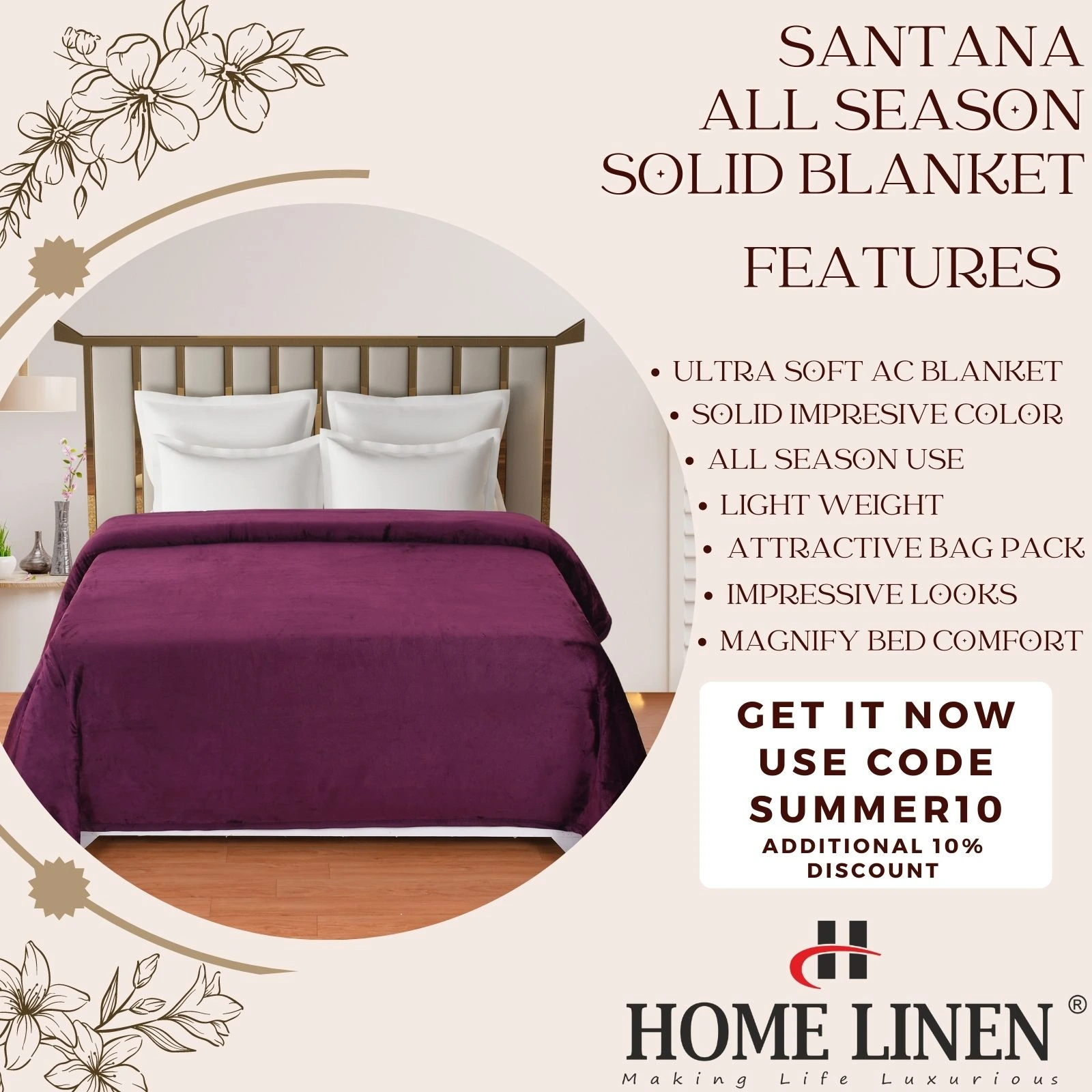 • Light Weight - HOME LINEN SANTANA Blanket is Light Weighted which is Just 1800 Grams for Double Bed and 1200 Grams for Single Bed Blanket. Which make it Very Comfortable To carry Even When Travelling